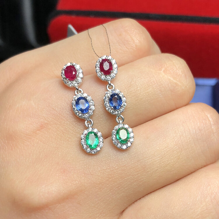 Colored Gems Stone Jewelry 925 Sterling Inlaid Natural Colored Stone Earrings 3*4 Finished Colored Gems Earrings